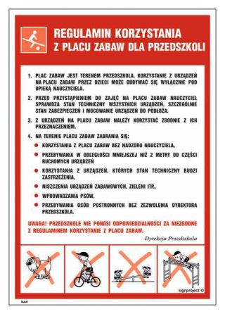 IAA41 Instrukcja regulamin korzystania z placów zabaw dla przedszkoli